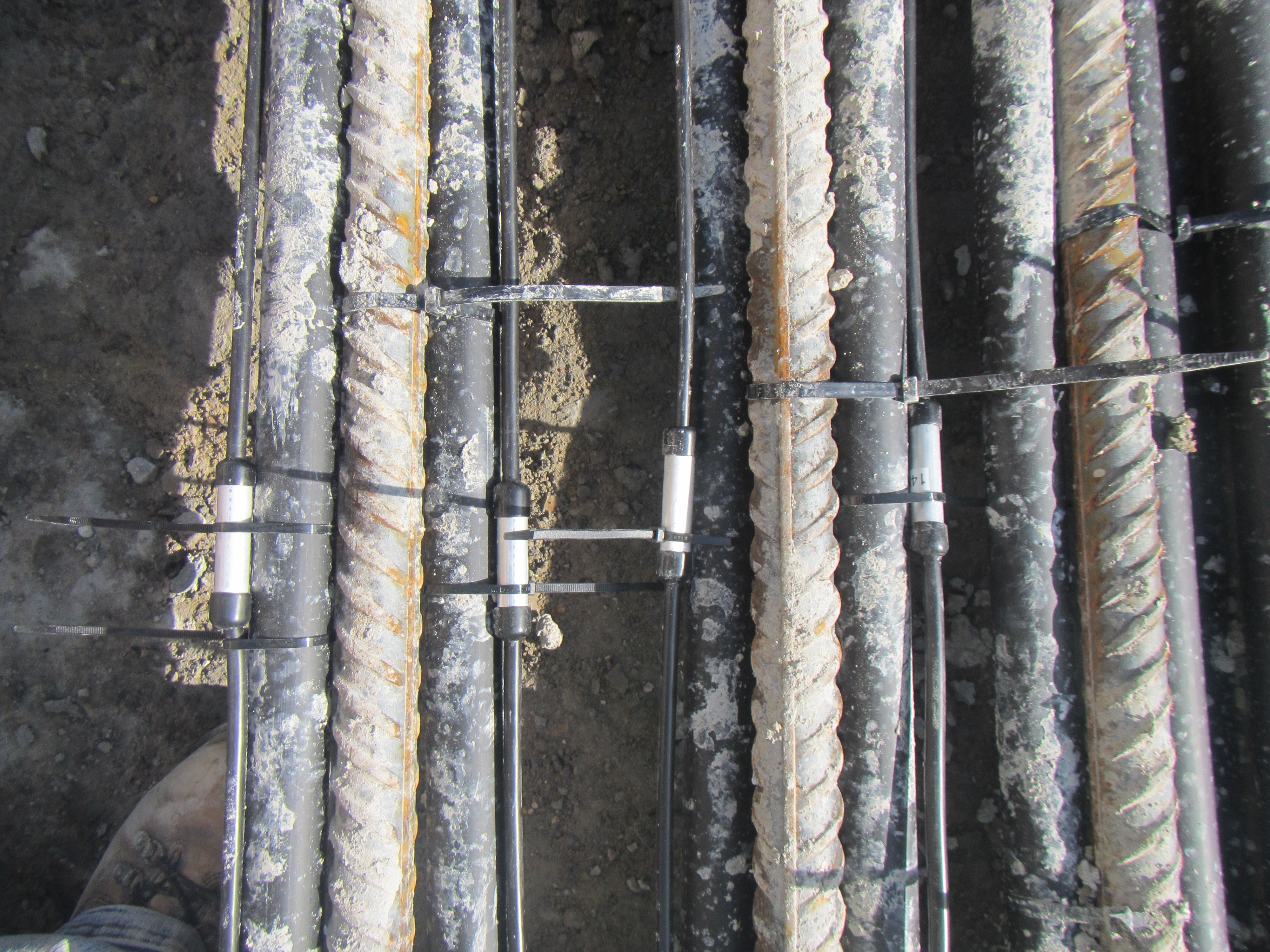 In this case the heat transfer pipes were being installed separately within the centre of the pile, and were also fixed with temperature sensors.